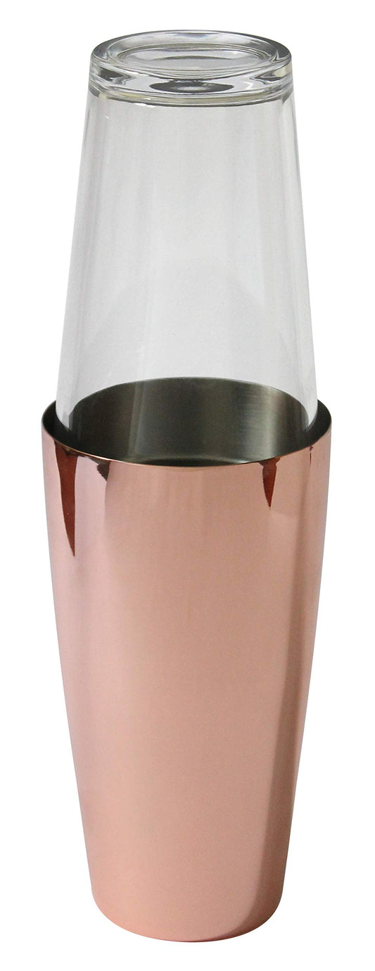 Cocktail Shaker Professionale Boston 750 ml in Vetro e Acciaio con Finitura Rame – Shaker per Cocktail Manuale da Barman, Miscelatore per Drink e Aperitivi, Bar Tool Elegante per Uso Domestico e Professionale