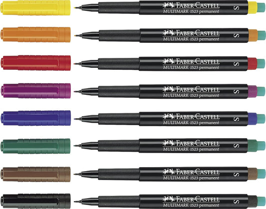 Faber-Castell Multimark 1523 Pennarello Permanente Universale Blu Punta Superfine 0,4 mm con Gomma – Marcatore Indelebile Multisuperficie per Plastica Vetro Metallo Legno – Alta Precisione