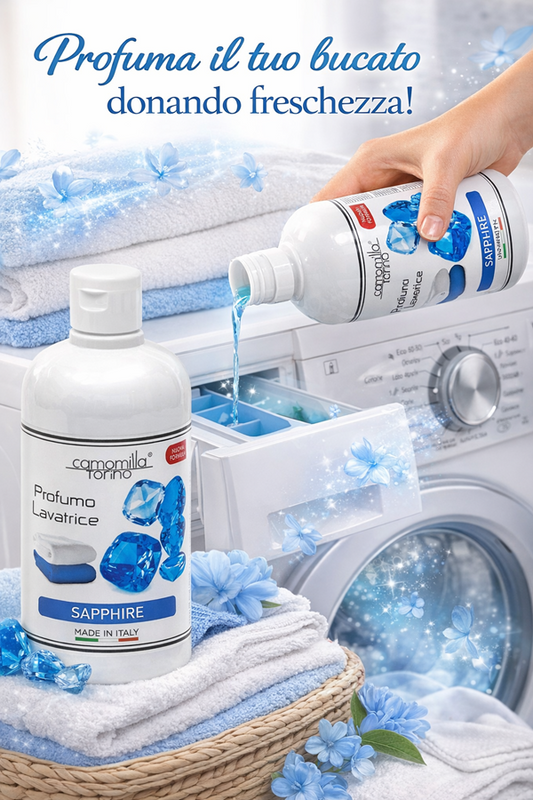 Camomilla Torino Profumo Bucato Concentrato 500 ml Sapphire – Profumatore per Lavatrice Lunga Durata, Fragranza Elegante e Intensa per Biancheria, Ammorbidente Profumato per Lavaggio, Profumo Bucato Persistente per Casa e Tessuti