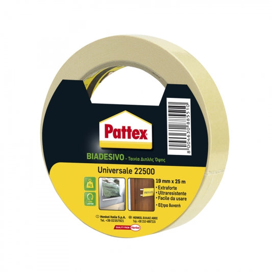 Pattex Biadesivo Universale 19mm x 25m Nastro Adesivo Forte Multiuso per Casa Ufficio Fai da Te Alta Tenuta Carta Plastica Legno Metallo Facile Applicazione Precisione Professionale