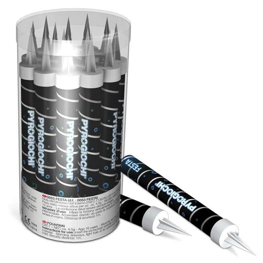 Barattolo da 15 pezzi Candela Luminosa STANDARD carta nera e bianca - Durata 50 secondi - Fontana Fiaccola da interno - Magic Flambè con fiamma argentata - ideale per compleanni, feste, party ecc.