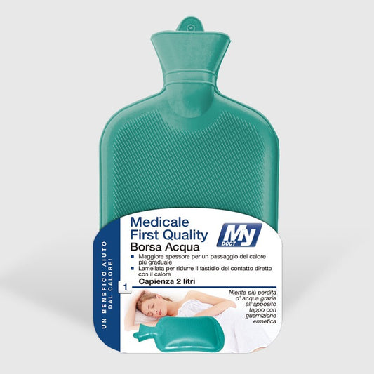 Borsa Acqua Calda Medical First Quality 2 Litri – Gomma Naturale Vulcanizzata, Peso 450 g, Tappo Ermetico Anti-Perdita, Design Lamellato per Calore Uniforme – Sollievo Dolori, Crampi, Coliche, Termoterapia
