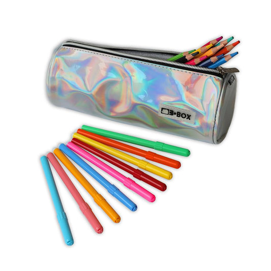 Busta Glossy porta Trucco con cerniera, versatile, adatta per la scuola, in casa, in ufficio colore Argento, ideale da borsetta , formato 22 cm x 7.5 cm