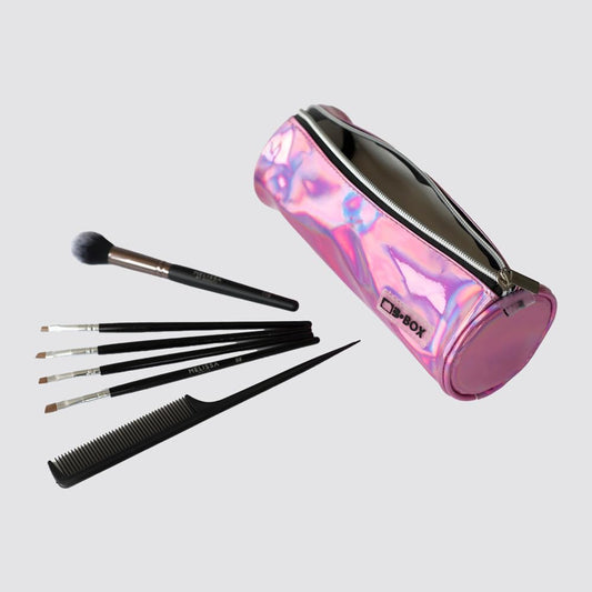 Busta Glossy porta Trucco con cerniera, versatile, adatta per la scuola, in casa, in ufficio colore Rosa, ideale da borsetta , formato 22 cm x 7.5 cm