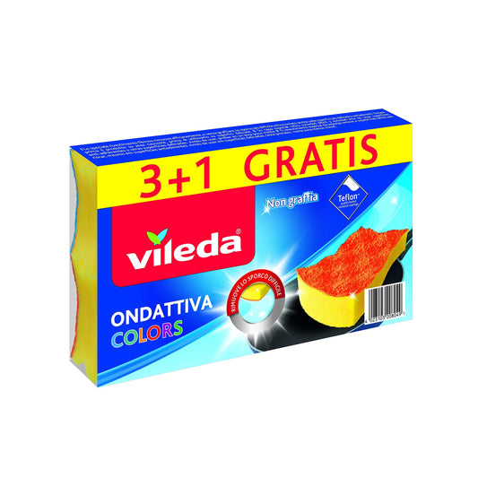 Vileda Ondattiva Milleusi Colors 3+1, Spugna, Multicolore, 13x22x2.6 cm, 4 unità
