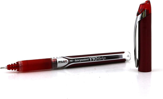 Pilot V10 Grip – Penne Roller a Inchiostro Liquido Nero, Punta Fine 0,5 mm – Confezione da 10