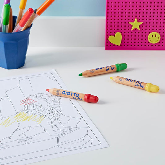 Giotto Bebè – Set da 6 Matitoni Colorati Super Lavabili – Matite Grandi e Resistenti per Bambini Piccoli – Facili da Impugnare, Sicure e Non Tossiche – Colori Brillanti e Divertenti, Ideali per Disegni Creativi, Scuola dell’Infanzia e Hobby