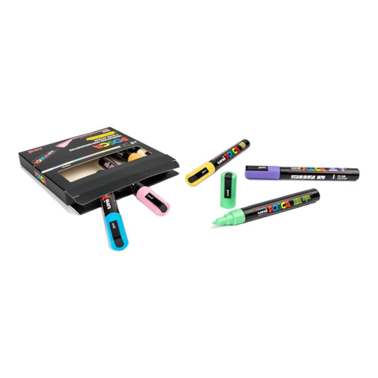 POSCA - Uniposca Set con Pennarelli Acrilici Punta Tonda 1.8 - 2.5 mm, Colori per Tessuti, Legno, Vetro e Altro, Pennarelli Acquerellabili Uni Posca Professionali e Cartoleria, Resistenti a Acqua/Luce