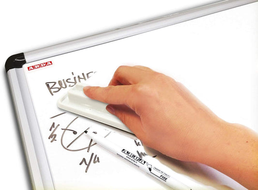 Set 3 Pennarelli Lavagna Bianca Cancellabili a Secco - Punta 4mm - Colori Nero, Rosso e Blu - Scrittura Scorrevole e Facile Cancellazione - Blister in Plastica