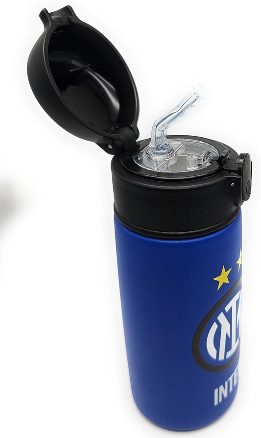 Seven Inter Borraccia Termica Bambino Nero Blu Calcio – Acciaio Inox Doppia Parete Isolante, Mantiene Freddo fino a 24 Ore e Caldo fino a 12 Ore, Chiusura di Sicurezza Anti-Perdita, Scuola Asilo Elementari Sport Tempo Libero