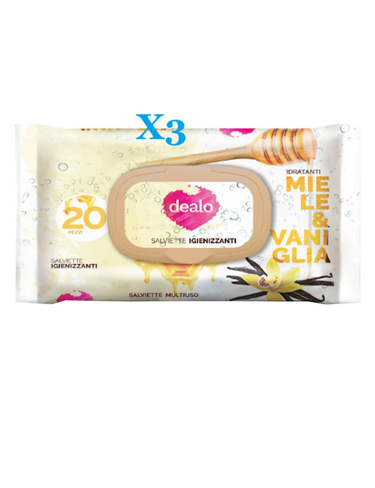 Salviette baby Miele e Vaniglia igienizzanti 3 CONFEZIONI DA 20 PZ