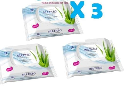 Salviette multiuso igienizzanti 3 CONFEZIONI DA 20 PZ