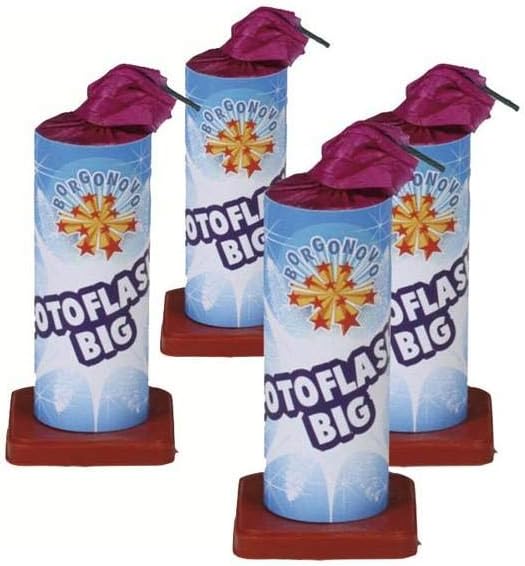 Party Fotoflash Big 4 Pezzi – Fontana Pirotecnica Scenografica ad Effetto Flash Fotografico – Fumo Denso e Lampi Intermittenti ad Alta Intensità – Uso Esterno, Coreografie Stadio, Eventi, Feste