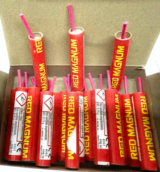 Petardi Red Magnum Categoria 1 (K1) con Miccia a Fiamma Rossa – Confezione Doppia 20+20 Pezzi (40 Totali) – Fuochi Pirotecnici Certificati CE per Capodanno, Feste ed Eventi Speciali