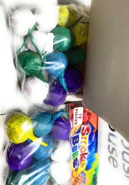 Palline Fumogene Colorate Cat.1 – Confezione da 12 Pezzi – Rosso, Giallo, Bianco, Blu, Verde e Viola – Uso Sicuro e Scenografico