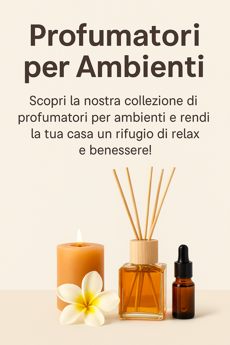Scopri la nostra selezione di profumatori per ambienti: una collezione pensata per trasformare ogni spazio della tua casa in un'esperienza olfattiva unica. Dai diffusori a bastoncini alle ricariche profumate, ogni prodotto è realizzato con ingredienti di alta qualità e fragranze coinvolgenti. Perfetti per soggiorni, camere, bagni e uffici, i nostri profumatori ti aiutano a creare atmosfere rilassanti e indimenticabili.