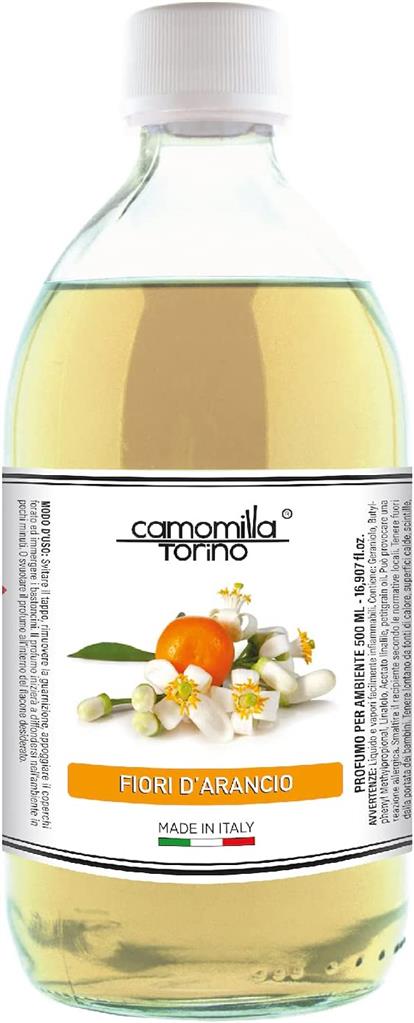 Camomilla Torino Ricarica Profumatore Ambienti 500 ml Fiori d’Arancio – Ricarica Diffusore a Bastoncini Made in Italy in 25 Fragranze – Essenza Floreale Agrumata, Elegante e Rilassante, Lunga Durata per Casa, Ufficio, Spa e Negozi
